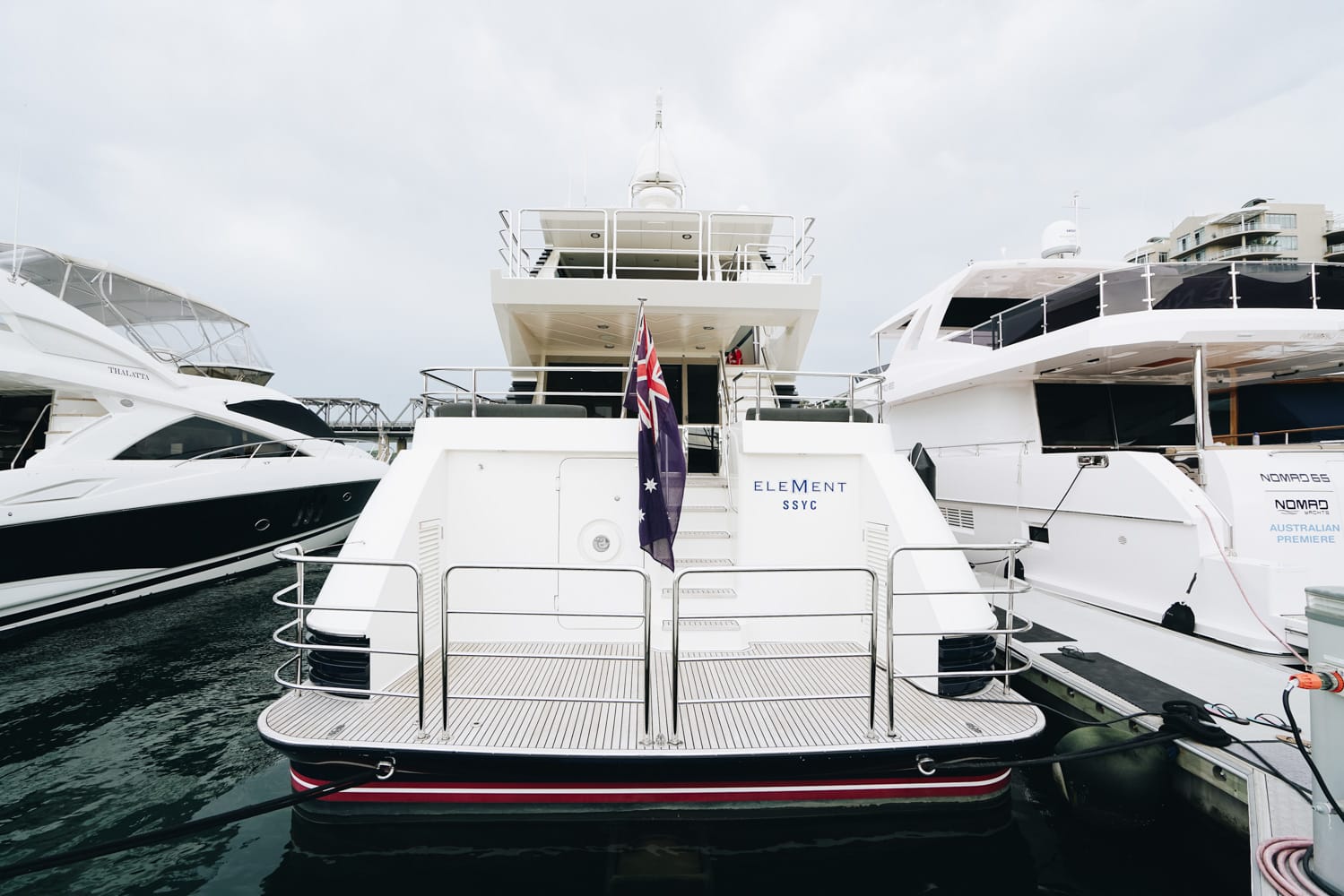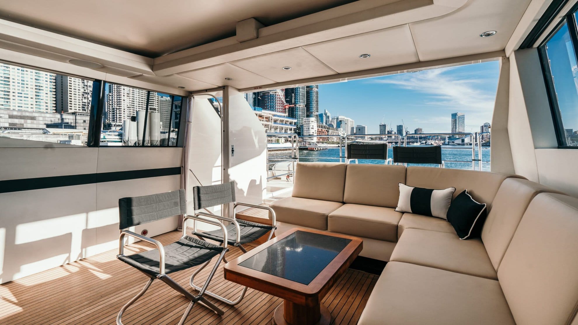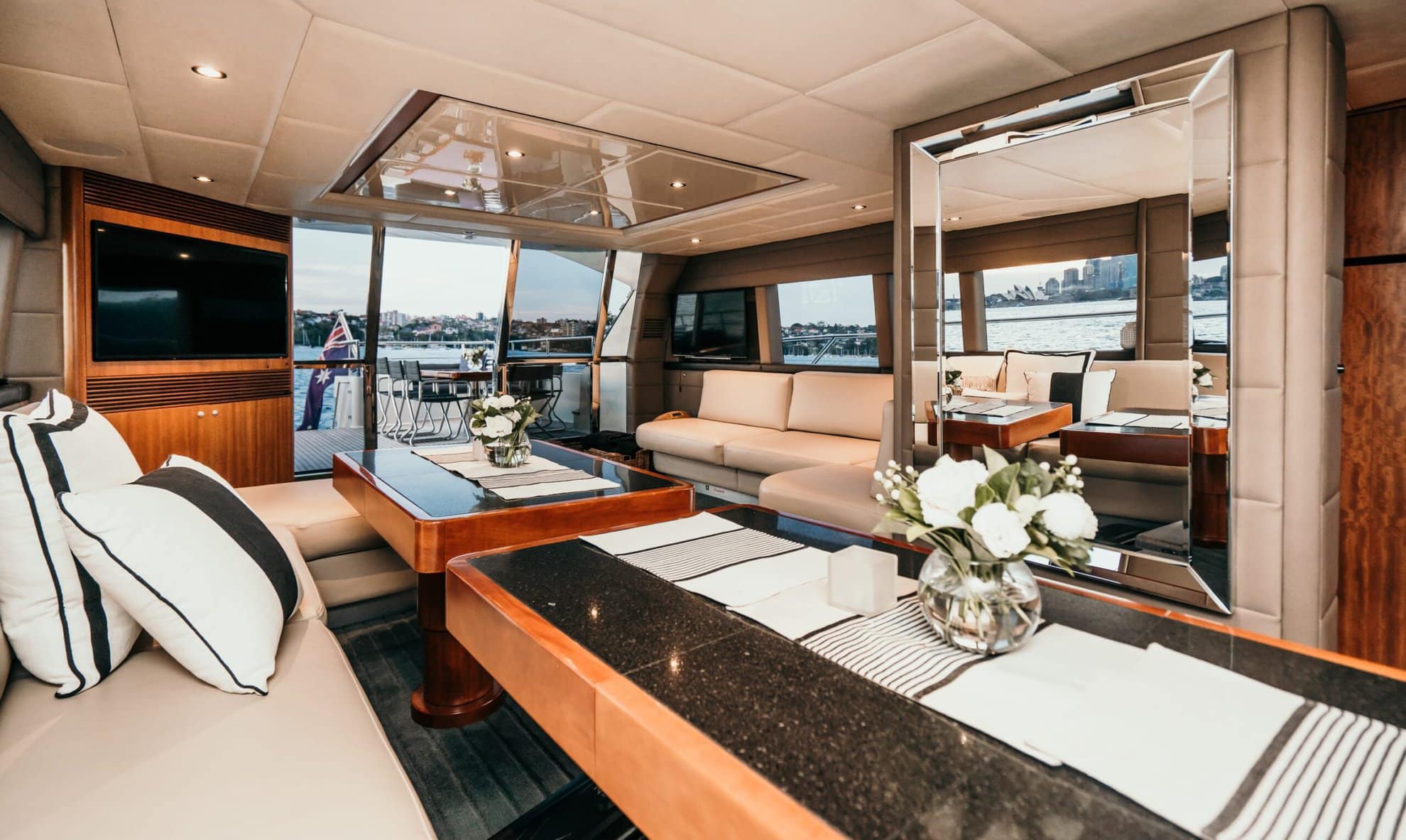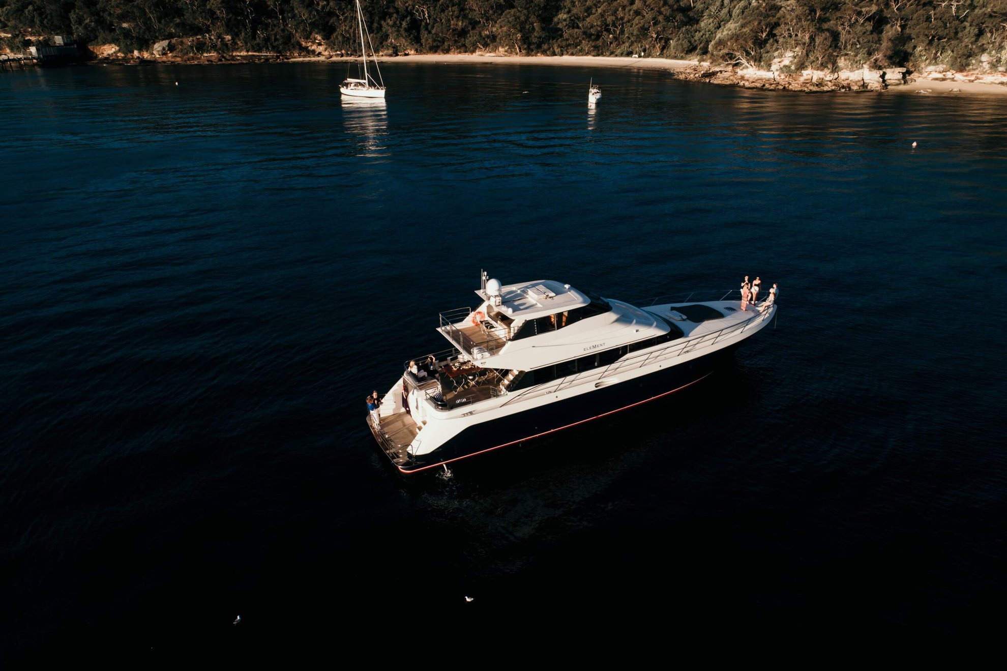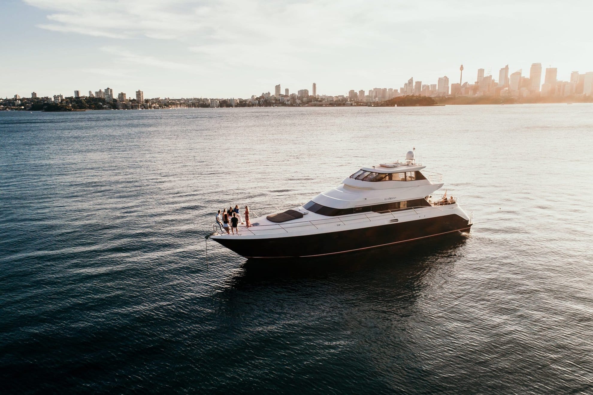 With 360 degree windows and elegant lines, Element has a beautiful balance of exterior and internal spaces. Whether youโd like to soak in the sun on the bow, host a special dinner on board, swim in the harbour, or see the stunning Sydney cityscape from the saloon or flybridge, Element has it all for your absolute enjoyment.
