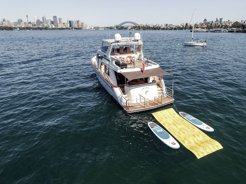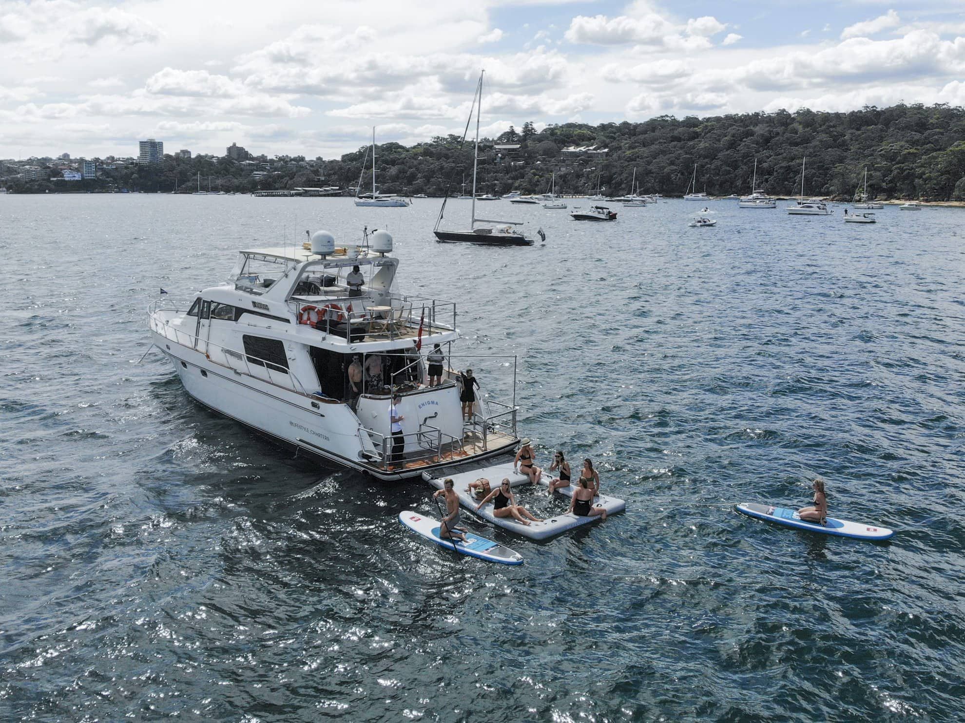 Enigma is perfect for any occasion boasting three entertaining areas, three cabins, two bathrooms, two sun lounges, fully stocked galley, multi zoned SONOS sound system, TV and multimedia player, aqua lily pad, two paddleboards and the only charter boat to have a floating swimming pool.