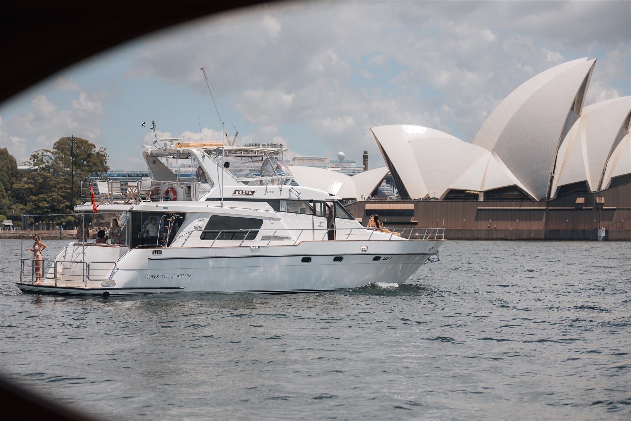 Enigma is a well appointed 65 foot flybridge cruiser, perfect for bringing together family, friends or colleagues, and can accomodate up to 41 guests.After a recent facelift, the Enigma experience is now more luxurious than ever before. Check out our gallery at the bottom of this page to see for yourself!