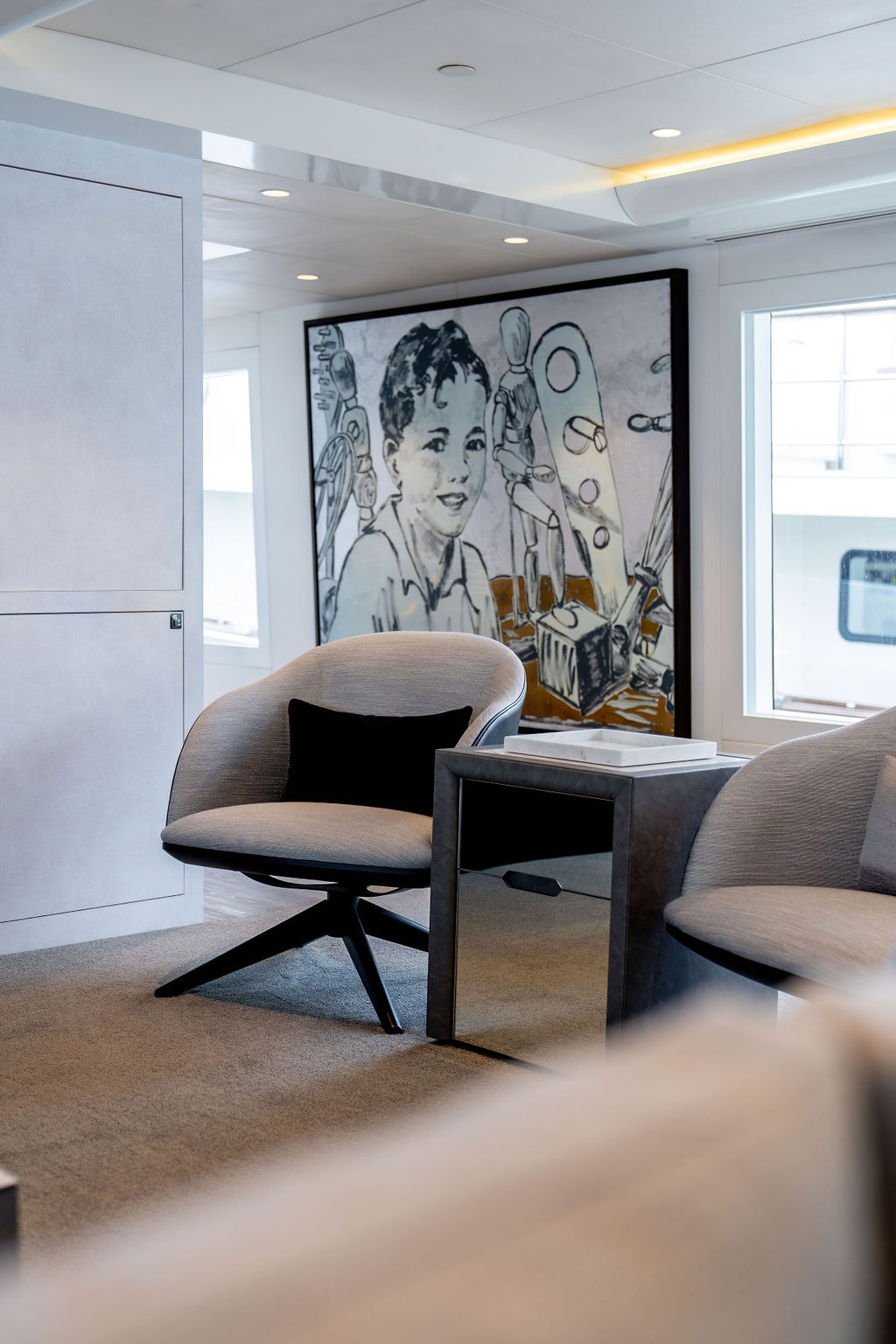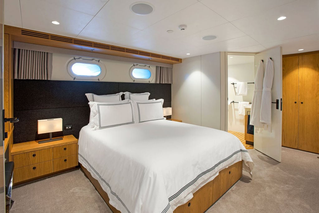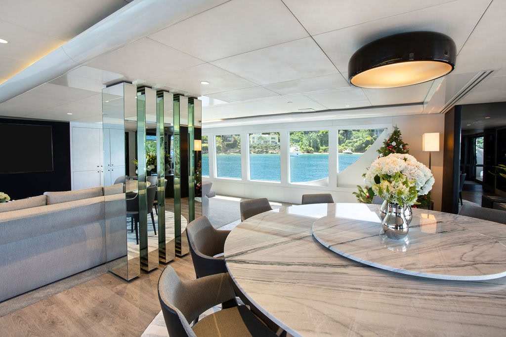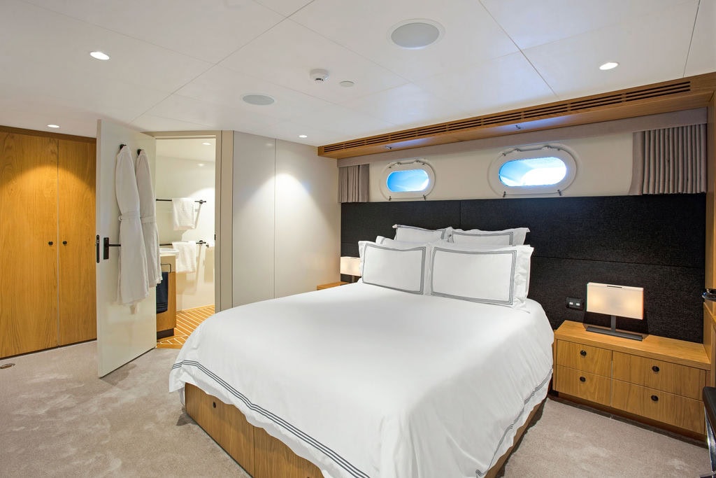 The details on Evolution are carefully considered. Itโs chic interiors and exteriors have a modern style. It features two huge entertaining areas on the main level and upper deck, indoor and outdoor lounging and dining areas, private fully stocked bar, wrap around decks, huge bow sun lounge, large accessible swim platform with all the toys, and four lush cabins. Iโll let the pictures speak for themselves.