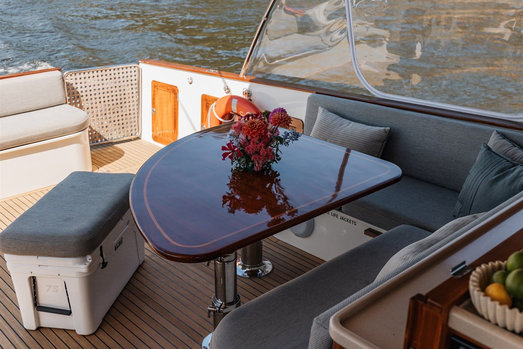Felix is a beautifully presented, luxury 58 foot Salthouse sports cruiser, perfect for your next social or corporate occasion. Felix has been fitted with a state of the art Seakeeper gyro ensuring incredible stability whilst underway and at anchor.