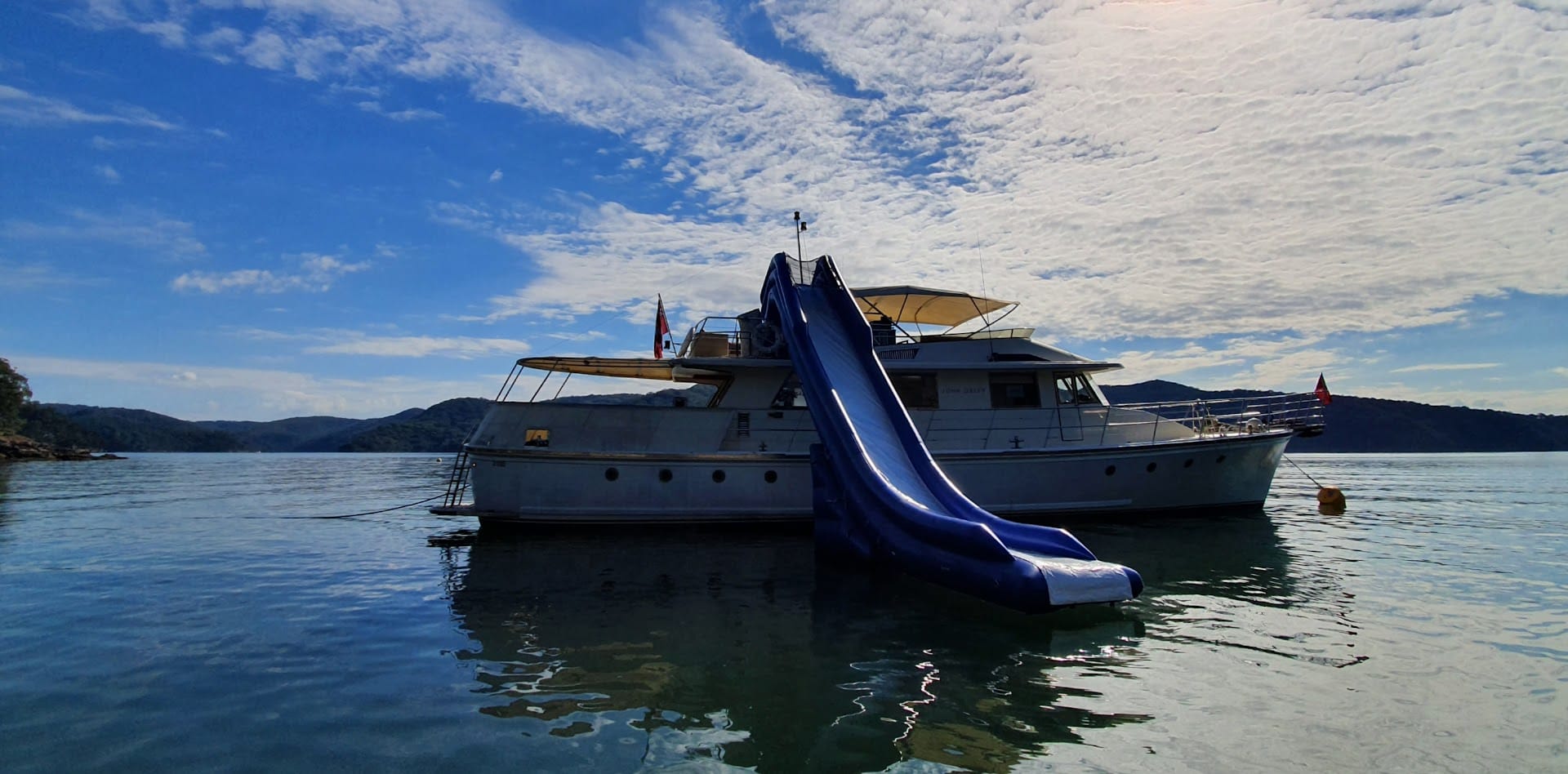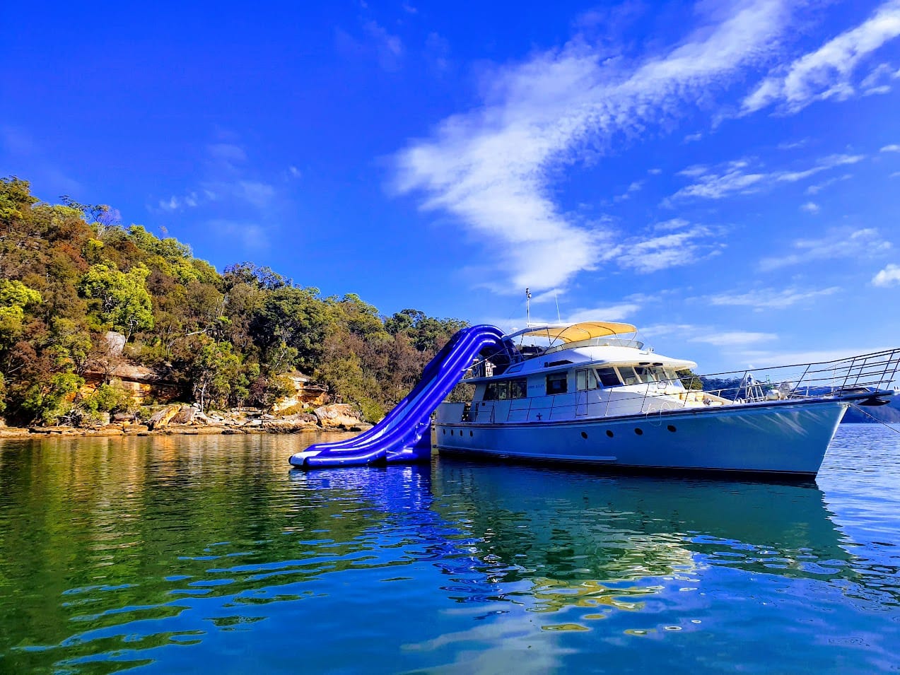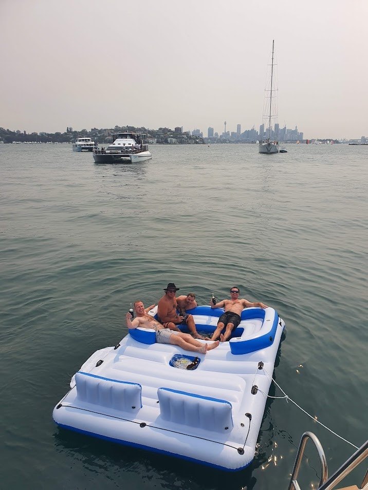 With everything you need for a fun afternoon on the harbour, the John Oxley has four cabins, two bathrooms, a commercial galley, all the water toys including a lilypad and slide and quality Bose sound system. Itโs food and beverage options are also varied and great quality. Swimming is accessible via a ladder, with swim toys available on request.