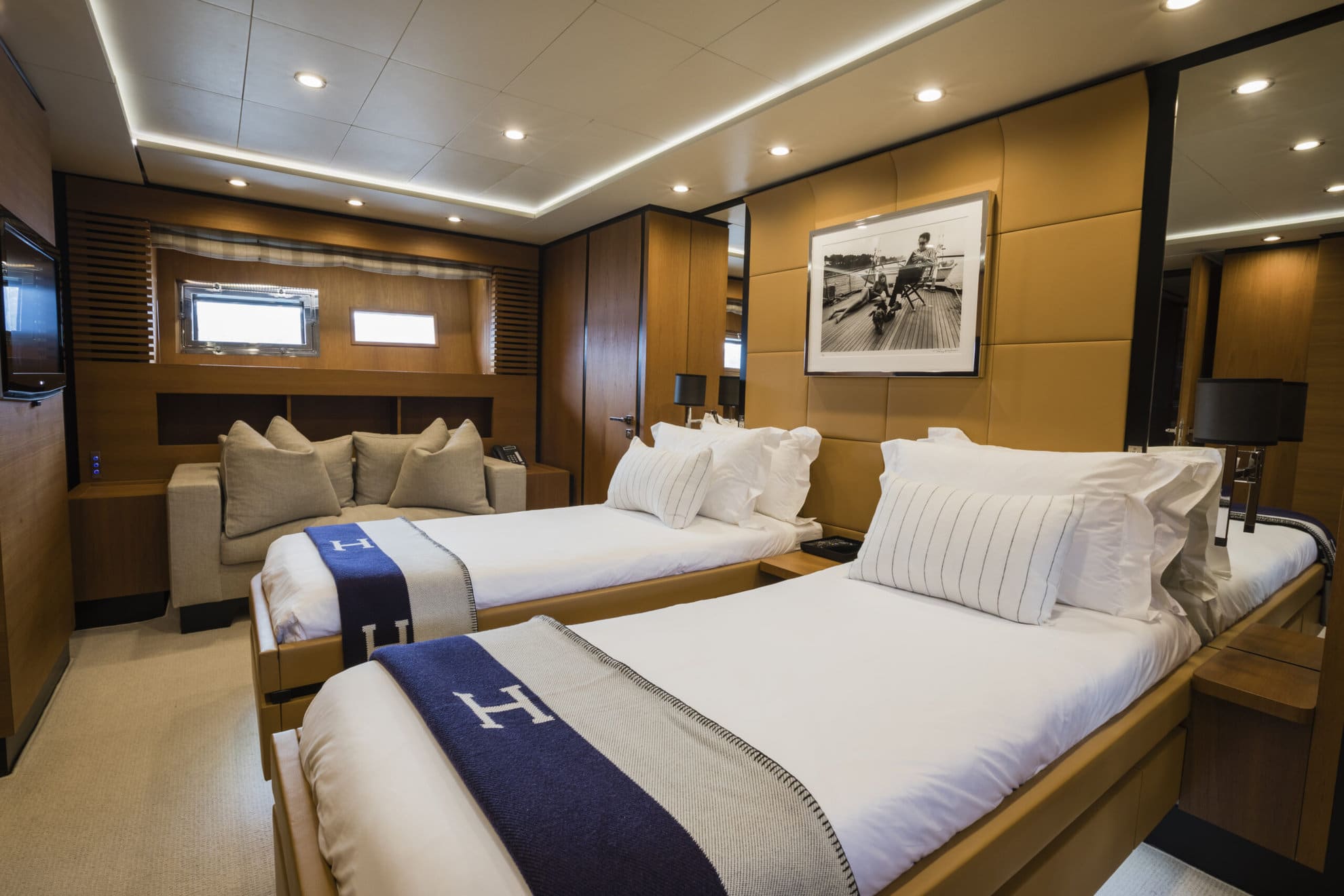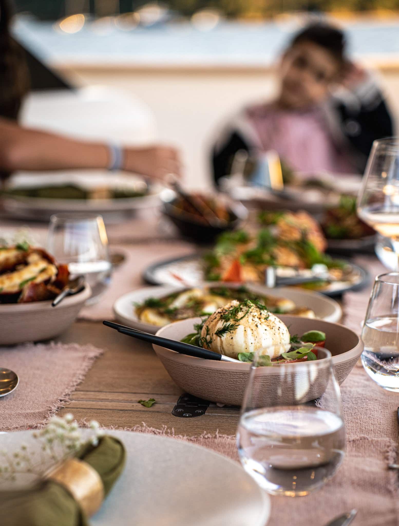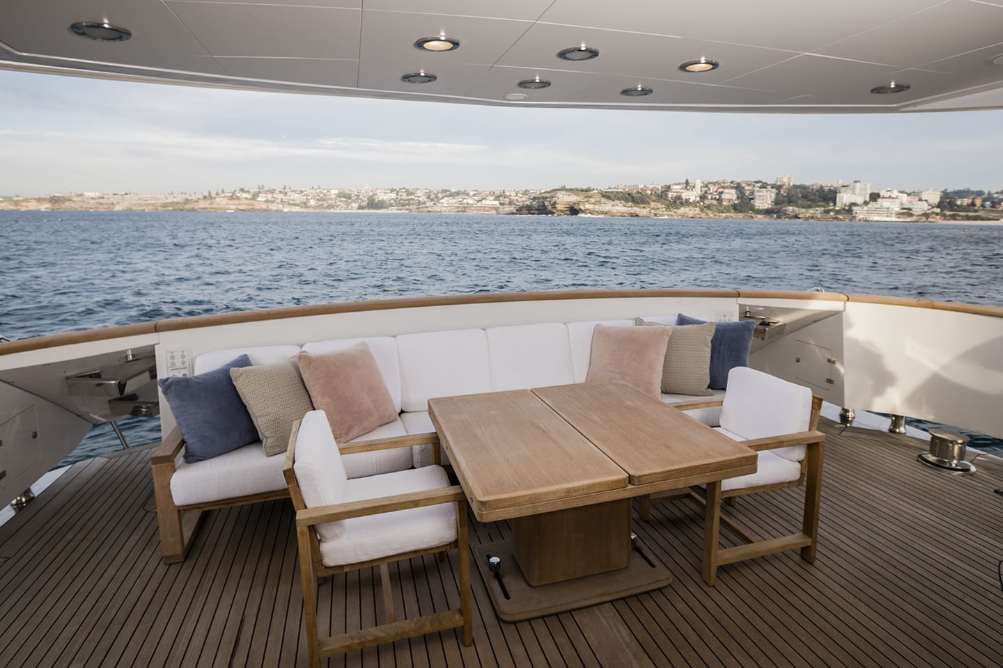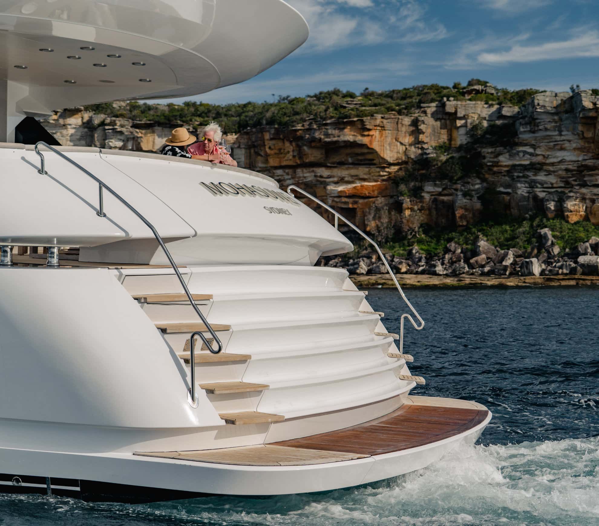 Accommodating up to 36 guests for event charters or eight guests overnight, Mohasuwei boasts a warm flybridge with retractable awning, lounge seating and casual dining, four luxurious guest cabins with ensuites, multiple and spacious living/entertaining areas, a cinema room with lounge (kids will love this!), plus a beach-club-style swim platform to-boot with chairs, hydraulic stairs and swim toys. Fun! With a professional and attentive crew, a great catering menu and a variety of beverage options, Mohasuwei is a great choice for your next day, night or overnight charter. Highly recommend.