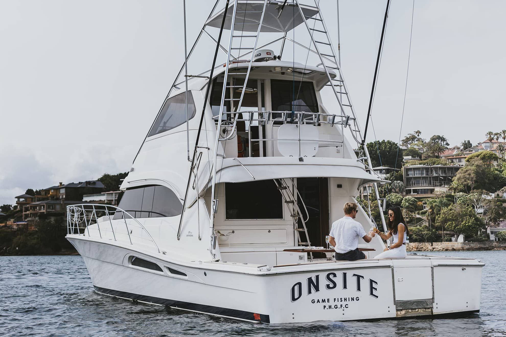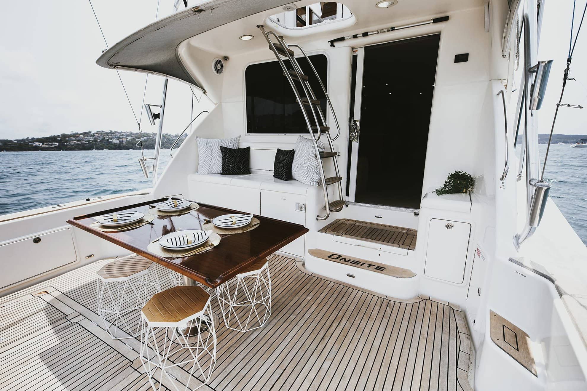 With walkaround decks, a large lounge area, coffee table, bar, dining table, TV and surround sound, Onsite has the ability to host any Sydney Harbour function, whether it be a family day of swimming, a fishing trip, or friendly catch up.