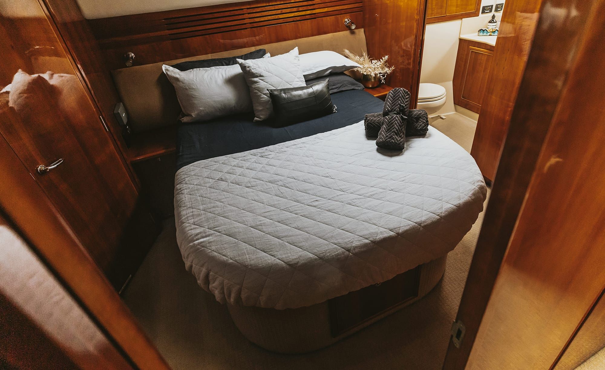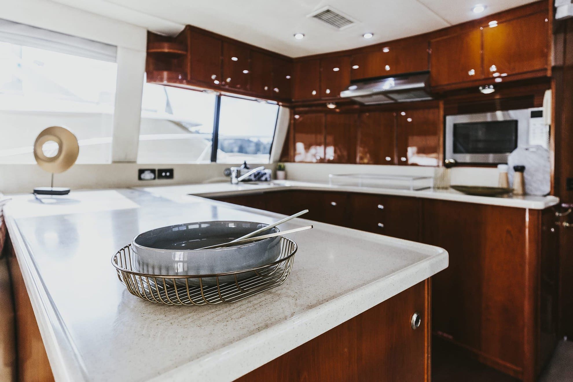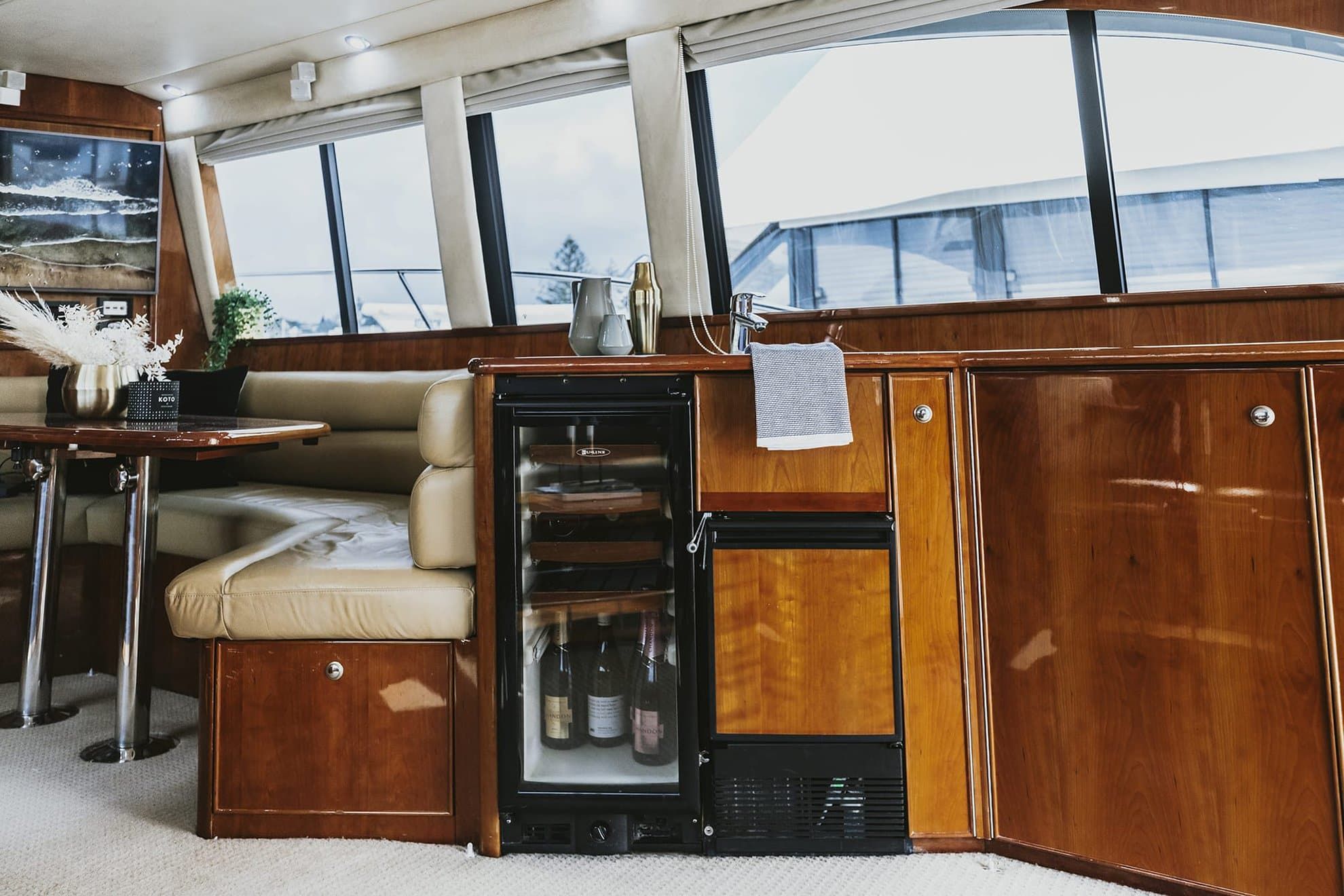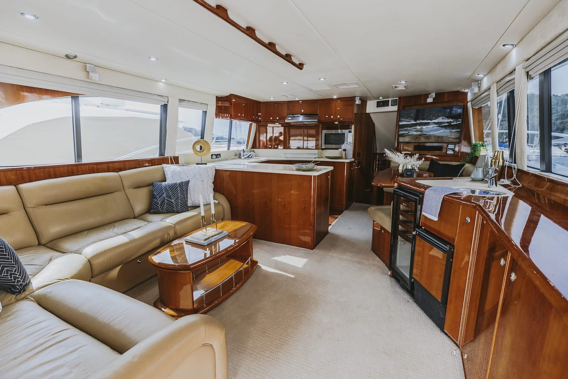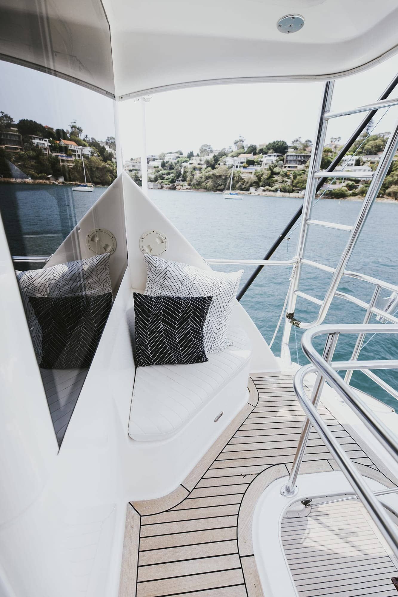 Its relaxed and spacious layout, and enclosed flybridge makes it the perfect all-weather vessel, allowing the gorgeous Sydney Harbour views to be enjoyed no matter where you are.
