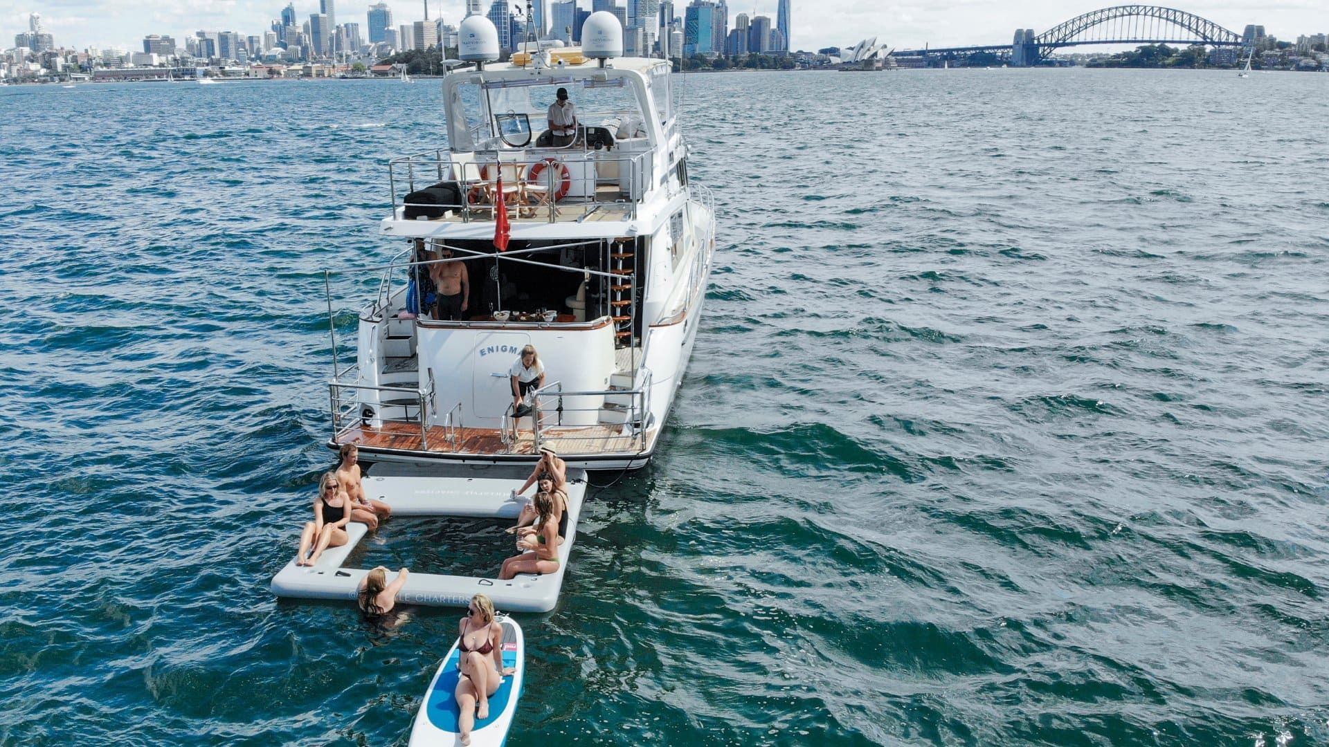 - Pool pontoon – now, this is a winner for large groups and guests who want to sit in the harbour with their feet dangling in the water. It’s always a hit! $400 hire fee on Enigma and Felix.