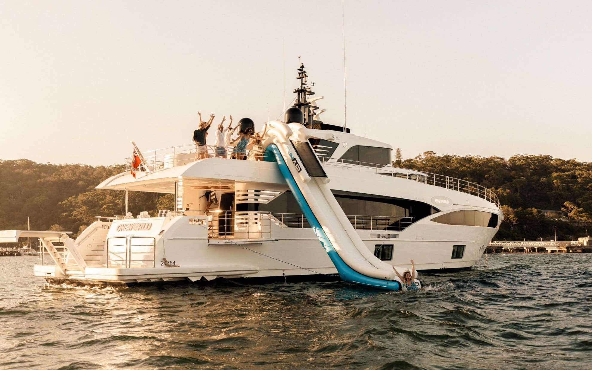 - Slide – let’s take it next level. A select few boats offer slide hire to your charter, and doesn’t it look fun?! From $2,500 per hire and a minimum five-hour hire as it takes quite a while to set up, it’s a bougie but seriously fun addition to your day on the water.